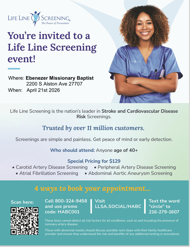 "Like" Ebenezer Missionary Baptist Church of Durham, NC on Facebook and share our service with family and friends. Thanks!